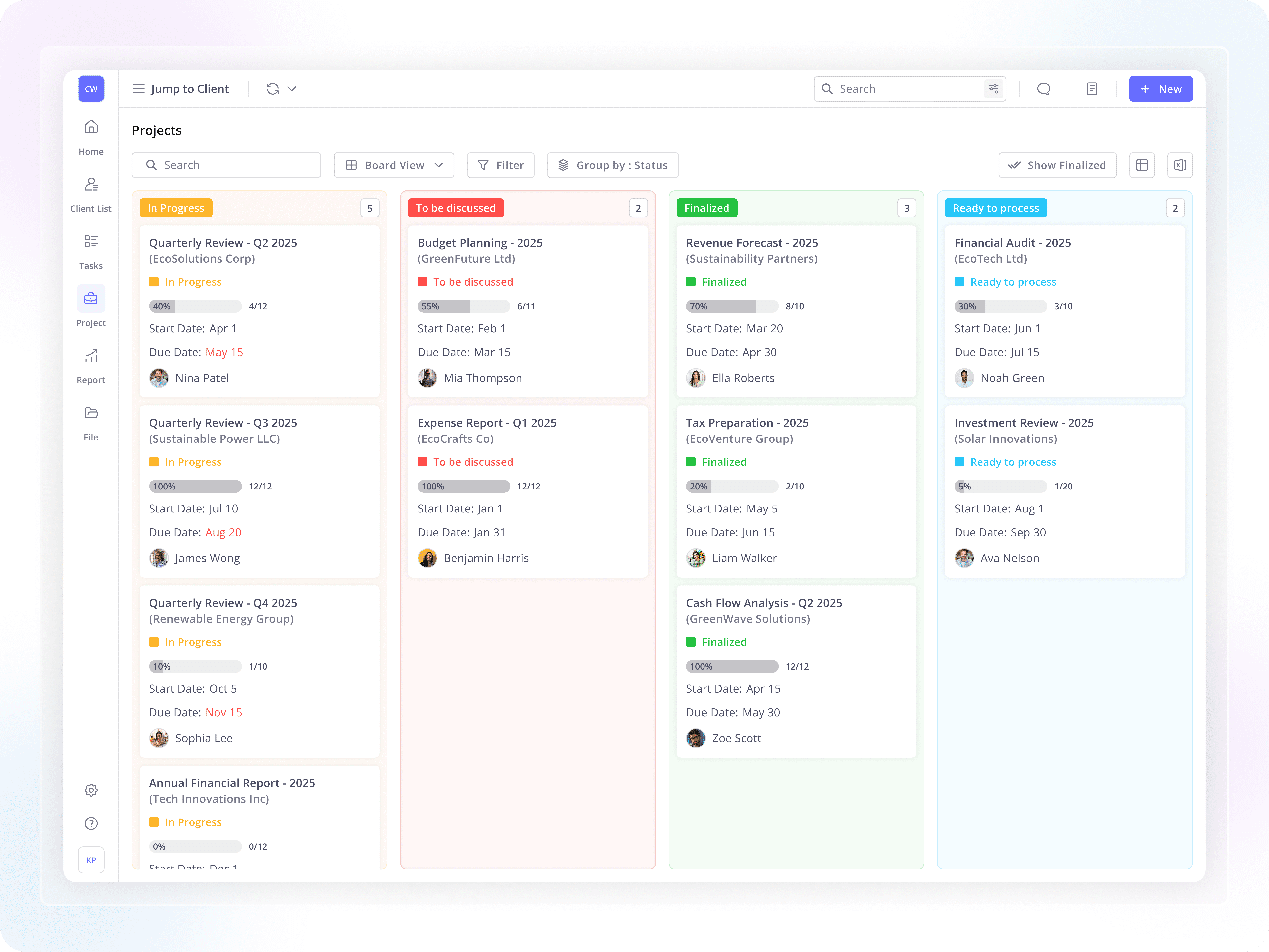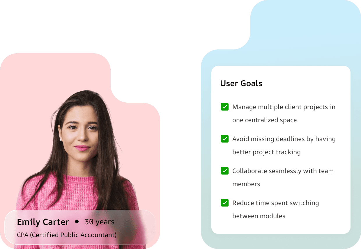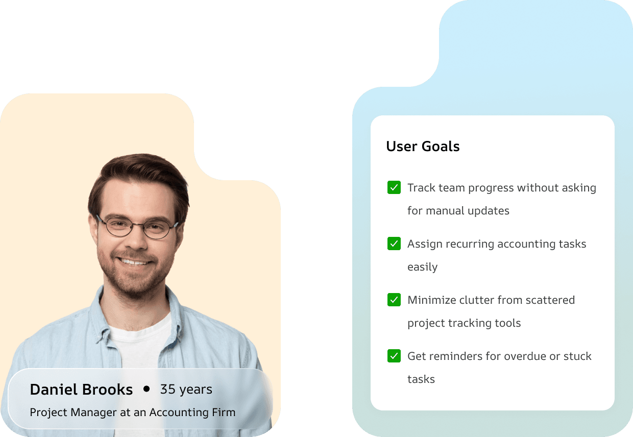 This persona reflects users who manage accounting teams and projects, prioritizing real-time progress tracking, task automation, and reduced operational clutter.