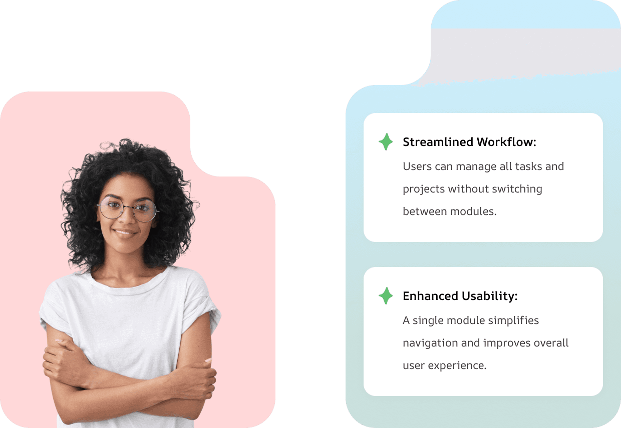 Time and effort are wasted toggling between modules for similar project types.